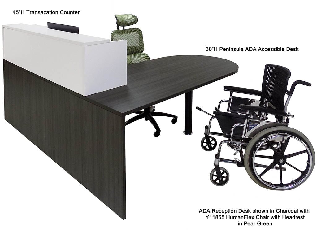 Desk Reception Height the height of a reception desk typically consists of two portions to accommodate both standing interactions with customers and seated work. the standard dimensions of a reception desk are 30 to 40 inches in height, 14 inches deep, and 60 to 72 inches in length. in general, the standard height of the reception desk is around 42. Desk Reception Height.